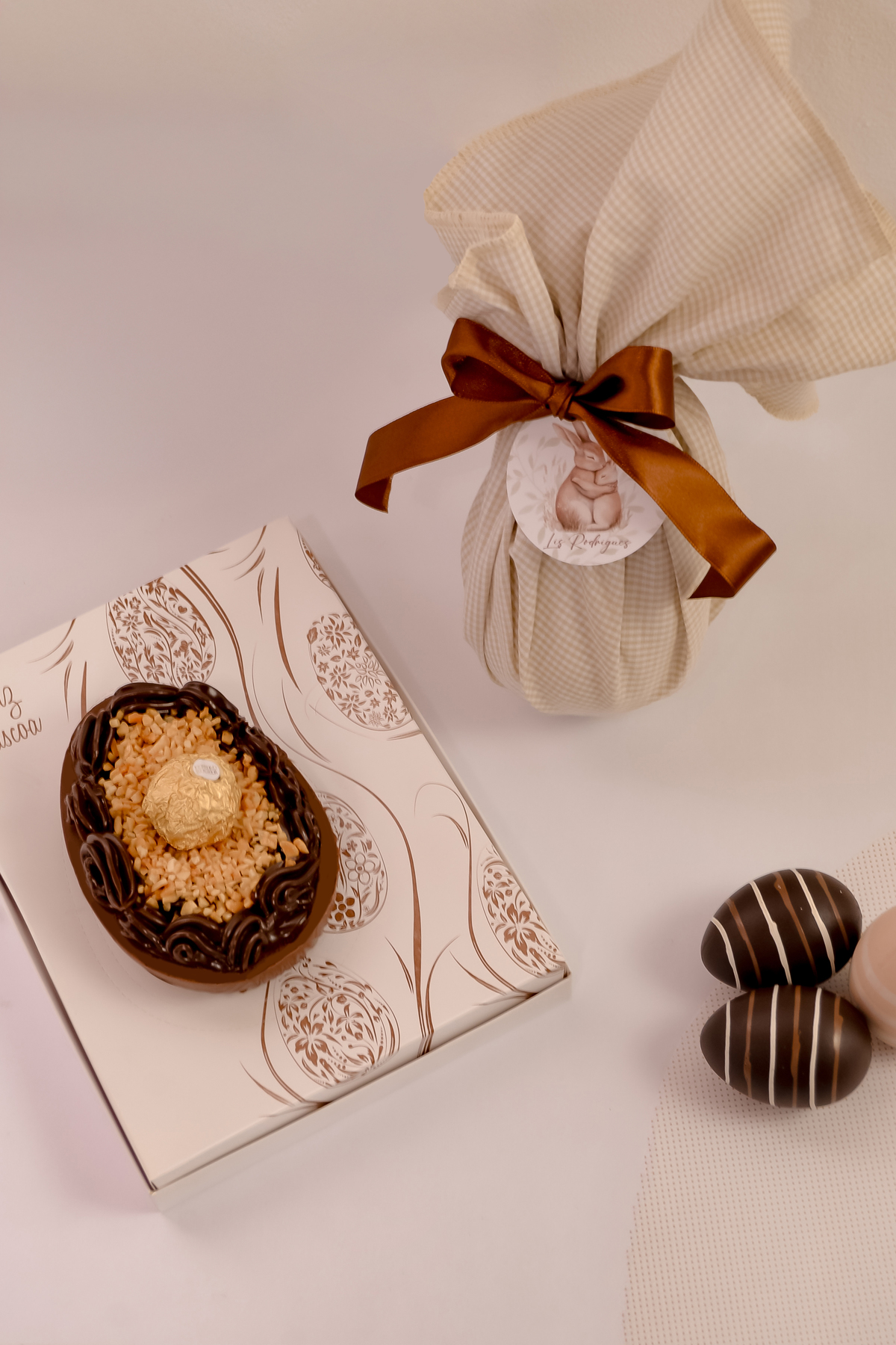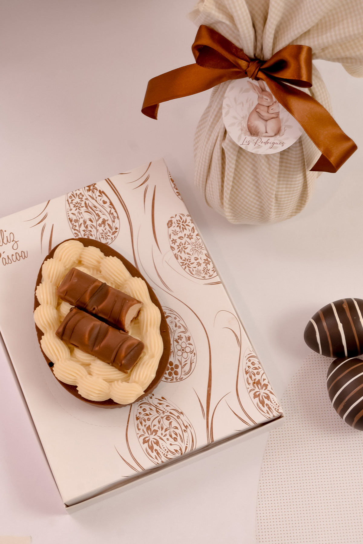 Uma campanha doce e elegante para a Páscoa da confeiteira artesanal Lis Rodrigues. Fotos que despertam o desejo pelo produto e que contam a história da marca, com afeto e delicadeza.